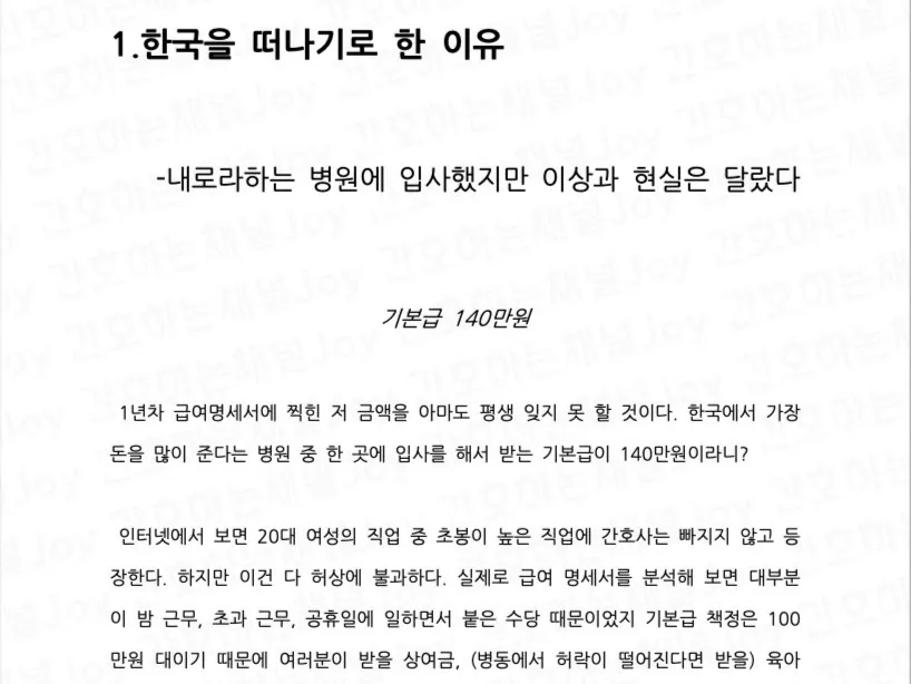유튜브 영연방 간호사 정보 ‘간호하는 채널 JOY‘ 첫 번째 전자책